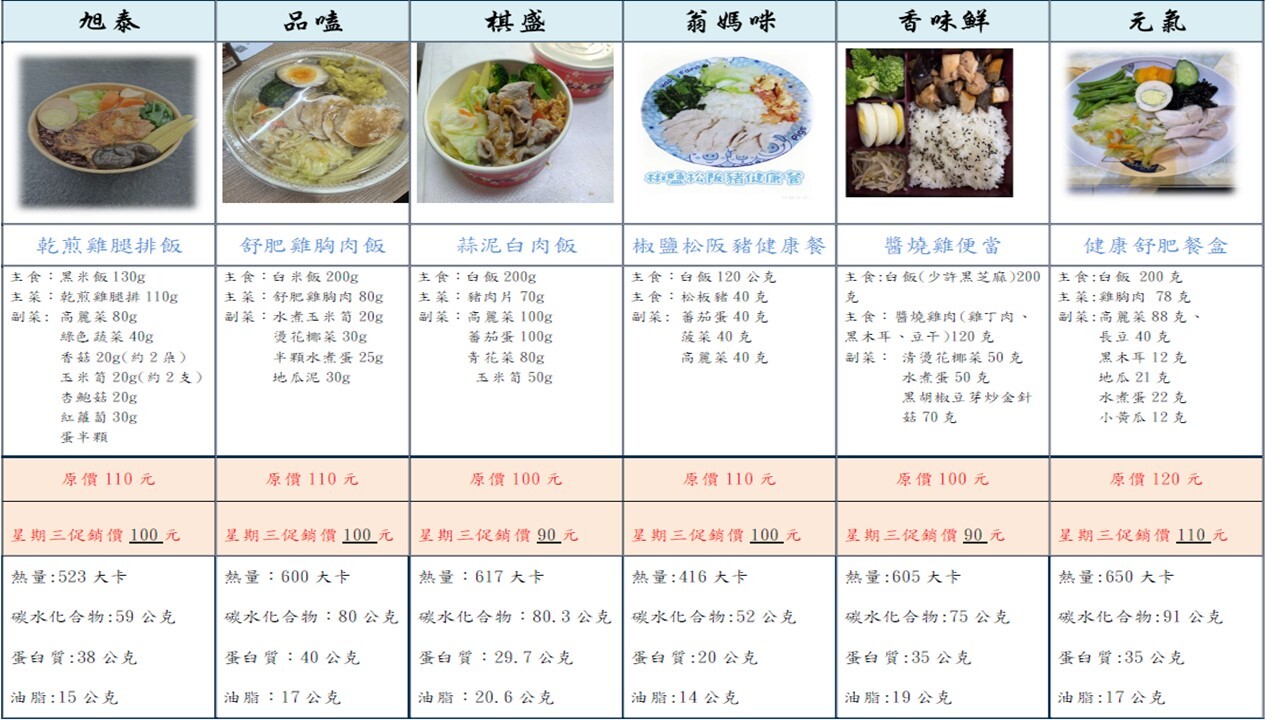 健康又美味的便當等你來選! 💻 輕鬆一點,馬上預訂~ 📅 每週三還有折扣喔!